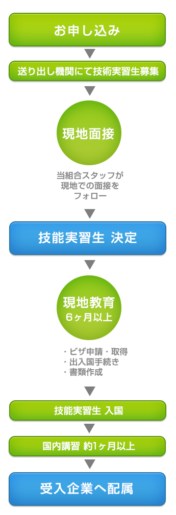 入れを可能としております。入国前に約6ヶ月基礎的な日本語教育および日本文化に関する研修を行い、また入国後も約1ヶ月の研修で日本