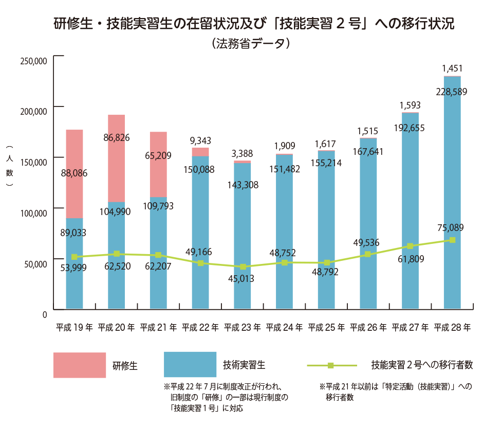 難な技術等の修得・習熟・熟達を図るものです。期間は、原則3年・最長5年(条件あり)とされ、技能等の修得は、技能実習計画に基づいて